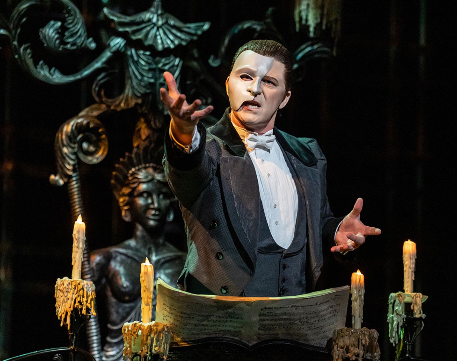 Explore production photography, videos and music that capture the magic of the world's most hauntingly beautiful musical. From stunning set designs to powerful performances, immerse yourself in the enchantment of The Phantom of the Opera.